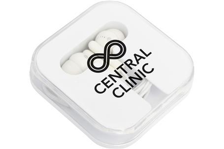 City Ear Phones are a must for your next budget conscious promotion. The designer case protects the ear buds and ensures annoying tangles are avoided. This product can be printed in full colour for maximum impact. Available with white body and clear lid.