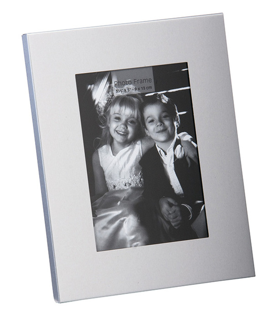 Aluminium brushed finish to suit 9 x 13cm photos. Landscape or portrait configuration. In silver box.