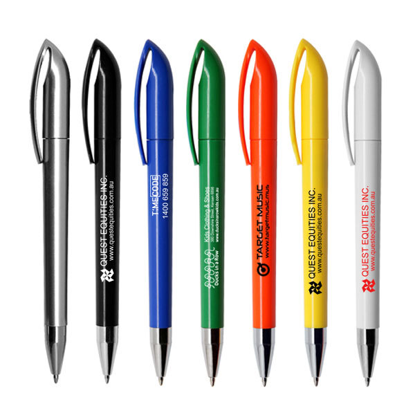 A Quality European Style Pen Twist Action Solid Plastic Pen with Silver Tip Colored Body Black Ink Refill, 1800 m Tungsten Carbide Ball Supplied bulk packed.